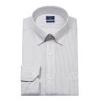 日清紡アポロコット 長袖 ワイシャツ メンズ 綿100% 形態安定加工 グレー ストライプ スナップダウンカラー CHOYA SHIRT FACTORY
