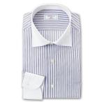 長袖 ワイシャツ メンズ 綿100% 形態安定加工 白 ホワイト ドビー ストライプ ワイドカラー CHOYA CONTEMPORARY