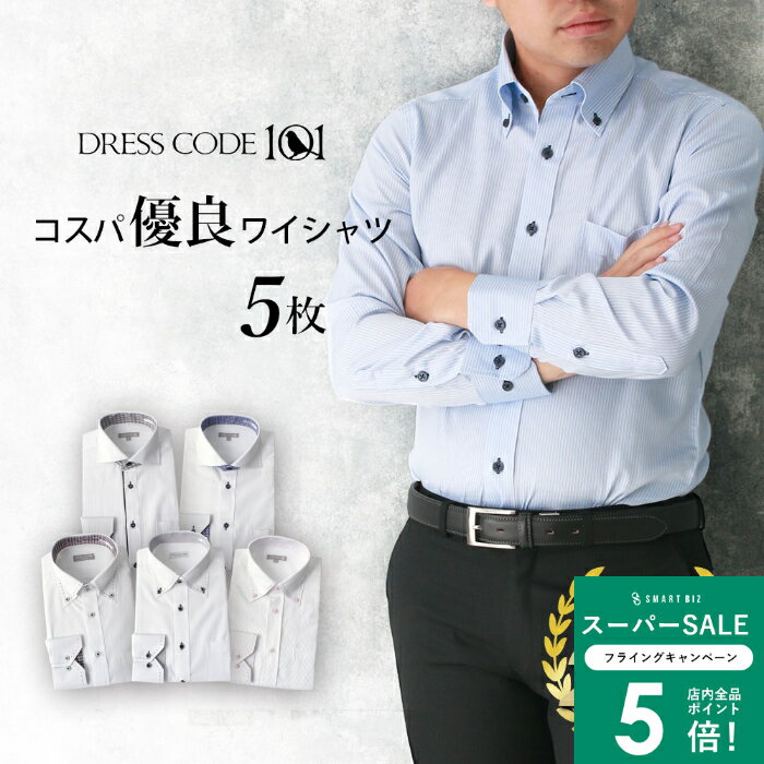 ワイシャツ メンズ 長袖 5枚セット 形態安定 送料無料 Yシャツ カッターシャツ 父の日 ボタンダウン セミワイド