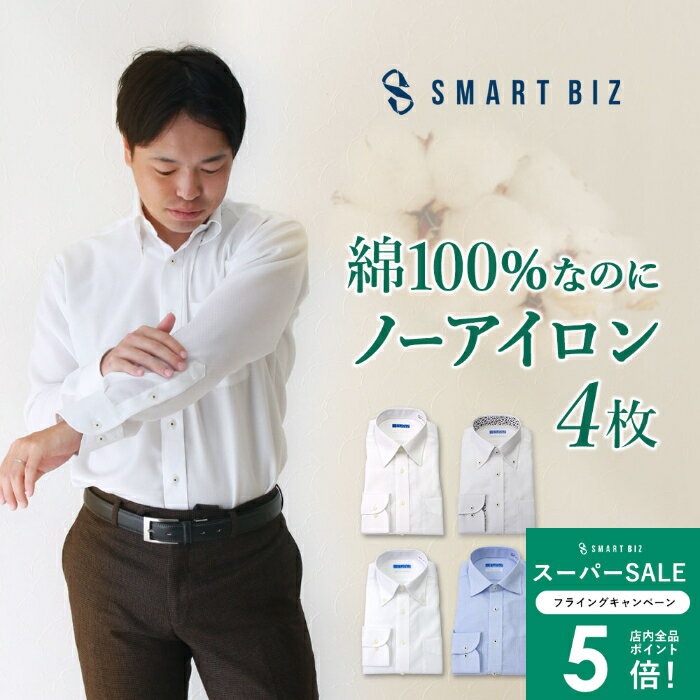 【綿100%なのにノーアイロン】 ワイシャツ 長袖 超 形態安定 綿100% 4枚セット【洗濯後返品OK】 ノーアイロン メンズ 標準体 長袖ワイシャツ Yシャツ カッターシャツ ノンアイロン セット 白 ホワイト 青 ビジネス 仕事 無地 ボタンダウン レギュラー