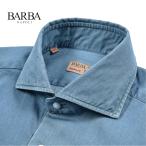 BARBA バルバ / DANDYLIFE デニムシャツ ドレスシャツ カジュアルシャツ ホリゾンタルカラー 長袖 コットン100% ブルー / セール対象