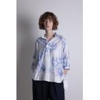 フラワーウェーブコットンサテン ラウンドフレア裾シャツブラウス