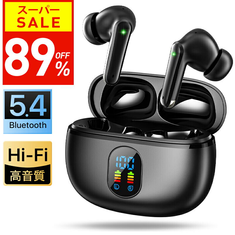 2680→1680更に10%OFF イヤホン Bluetooth5.4 高音質 ワイヤレスイヤホン ノイズキャンセリング 防水 ブルートゥース ヘッドセット マイク 通話 自動ペア iPhone