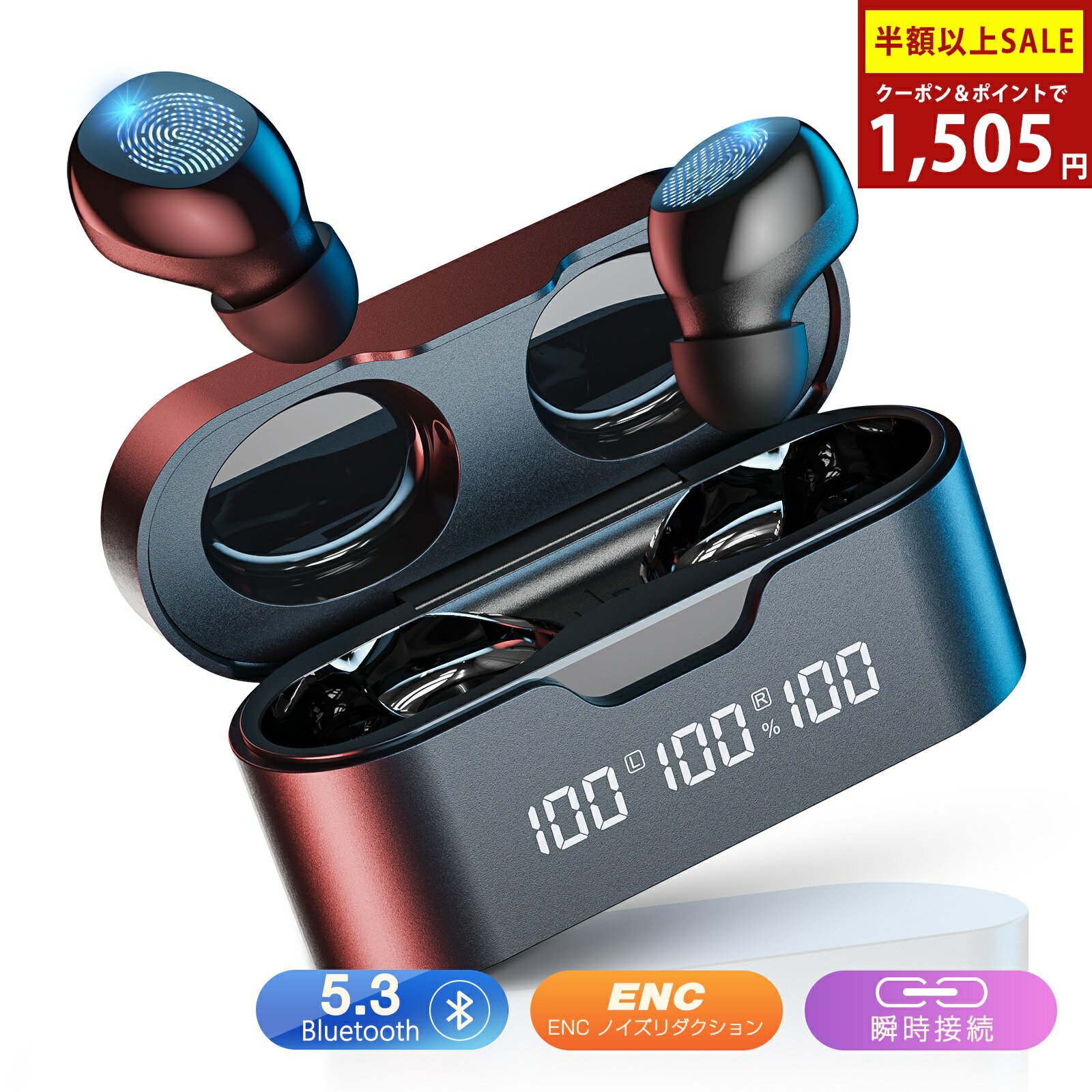 【SS限定】\66%OFF&P5倍→1,505円!/ワイヤレスイヤホン Bluetooth イヤホン LED残量表示 多機能タッチ操作 ノーズキャンセリング Hi-Fi マイク内蔵 Siri対応 Type-C急速充電 ブルートゥースイヤホン 左右分離型 片耳 ビジネス/WEB会議/テレワーク/仕事/通学/通勤