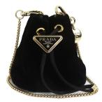 (未使用 展示品)PRADA プラダ 1NR016 ミニ チェーン ショルダーバッグ 三角ロゴプレート ドローストリング 巾着 ベルベット ナイロン ブラック ポーチ 箱付