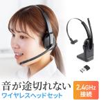 ワイヤレスヘッドセット 業務用 充電スタンド付き 片耳 低遅延 2.4GHz 最大通話約25時間 ノイズキャンセリングマイク付き ミュートボタン USB接続 400-HSW052