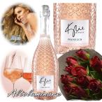 イタリアスパークリングワインロゼ カイリー・ミノーグ プロセッコ ロゼ とバラの花束
