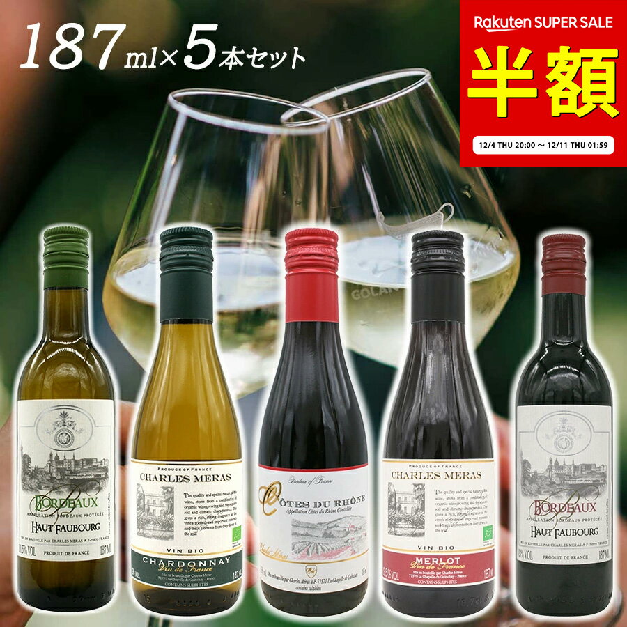 【11日 01:59まで 半額!7,000円→3,500円 在庫限り】【送料無料 ワイン ミニボトル 187ml 飲み比べセット 5本】 赤ワイン 白ワイン 辛口 赤 白 プレゼント ギフト 持ち運びに便利 クリスマス