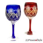 ペア 江戸切子 ワイングラス 魚子 赤と瑠璃 木箱入り