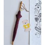 傘 utatane×Kuovi 日傘 完全遮光100% 晴雨兼用 utataneくまちゃん&果樹園 チャーム付 バンブーハンドル レディース