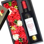 【送料無料】ワイン 贈り物 母の日 シャボンフラワーボックス セット♪ハートラベルの金賞赤ワイン ギフトセット カーネーション