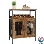 ワインバーキャビネット 木製 酒棚 自立式 ディスプレイ ワインラック ホルダー お酒収納ラック 収納 ウイスキー ガラスホルダーとフェンス付き おしゃれ 大容量