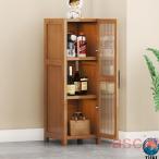 ワインバーキャビネット 竹製 食器棚 ダイニングサイドボード ガラスキャビネットの扉 調節可能な棚 大容量 コーヒーバーキャビネット 酒類貯蔵ロッカー 防塵 防