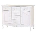 〔開梱設置サービス付〕 ワイドキャビネット リビング収納 幅120cm 木製 引き出し 扉 脚付き 姫系 アンティーク風 ハンプトンシリーズ リビング
