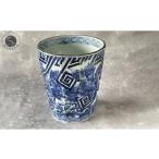 染付蛸唐草文様扇割山水画特大花瓶|有田焼 陶芸作家 藤井錦彩作