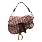ディオール オブリーク サドルバッグ ハンドバッグ ショルダー 2WAY ボルドー ワインレッド キャンバス レザー レディース Dior 【中古】