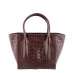 [10%OFFクーポン対象]スモール クロコダイル ハンドバッグ マット 加工 センター取り 25cm 2WAY仕様 レディース 軽量 ワイン/ダークブラウン/ブラッ