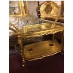 イタリア輸入SILIKシリックゴールド色キッチンワゴンワインテーブルワインホルダー付きワゴン ゴールド薔薇ローズの絵