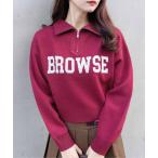 ニット セーター ハーフジップショート丈ロゴニット レディース