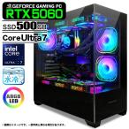 ゲーミングPC デスクトップパソコン GP-V3 ブラック ピラーレス GeForce RTX5060 Intel Core Ultra7 265KF Win11 SSD500G メモリ32GB CPU水冷ファン 新品1年保証