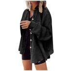【並行輸入品】レディース ワッフルニットシャケット オーバーサイズ ボーイフレンドシャツジャケット コーデュロイボタンダウンブラウス ルーズフィ