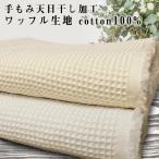 京都桂川水系天然水 天日干し 手もみてじわ加工 綿100% ワッフル 生地 50cm単位 6400 無地 おしゃれ タオル ケット パジャマ キッチン1mまでネコポス可