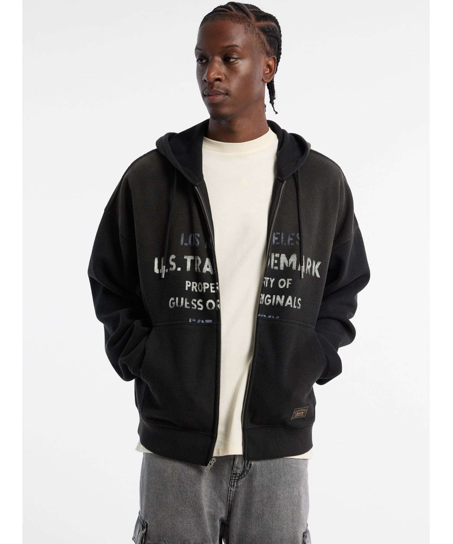 【SALE/50%OFF】GUESS Originals GUESS Originals パーカー (M)Waffle ZipUp Hoodie ゲス トップス パーカー・フーディー ブラック ホワイト【送料無料】