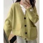 カーディガン 厚手ニットカーディガン ワッペン付き ゆったり レディース レディース