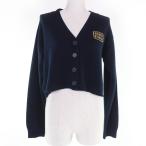 極美品☆MIUMIU ミュウミュウ 2023年製 MMF865 カシミヤ100% ロゴワッペン クロップド 長袖ニット カーディガン ネイビー 36 正規品