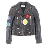 SAINT LAURENT PARIS(サンローランパリ) サイズ:44 ワッペン付き ダメージ加工 ダブルライダースレザージャケット 483224 YC1EP ブラック【中古】【程度B】【カラーブラック】【取扱店舗新宿】