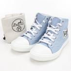 中古良品 HERMES エルメス スニーカー YZ064379 ハイカット イリコ ロゴワッペン レディース ブルー
