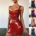 レザーワンピース ミニ ショート丈 キャミソール フェイクレザー ワンピース エナメル 光沢 セクシー タイツ タイト ワンピース 美背 大人 ダンス衣装 演出服 舞