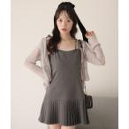 【10%OFFクーポン!2/10(火)1:59まで】VIVID LADY キャミワンピース プリーツ ミニ 紐 リボン レイヤード キャミワンピ 韓国 韓国ファッション ショート タック ノースリーブ ミニワンピース キャミソールワンピース レイヤードワ