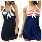 ワンピース ショート セクシー ミニ ホルターネック マリン キャミソール 水着 トップス リゾート ビーチウェア レディース 体形カバー