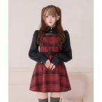 ワンピース 「ペチコート付き」肩リボンツイードミニキャミワンピース