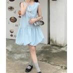ワンピース ショルダーリボンギャザーフレアワンピース