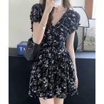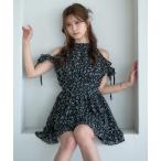 ワンピース 肩シャーリングミニワンピース