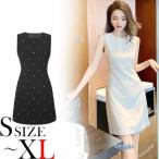 シンプルノースリーブ ショートビジューワンピース 白 黒 キャバ スナック パーティー ドレス 韓国 レディース