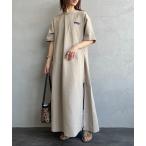 ワンピース リボン刺繍 ポロシャツミニワンピース