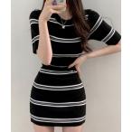 ワンピース サマーニットワンピース ボーダー柄 韓国