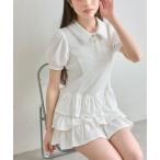 ワンピース フレンチスリーブフリルワンピース