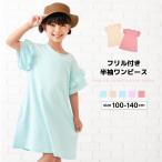 ワンピース 袖フリル 半袖 ミニ丈 ショート丈 ティアードスリーブ 子供用 キッズ ジュニア 女の子 ガールズ かわいい 無地 シンプル 丸襟 おしゃ