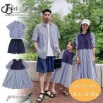 リンクコーデ 親子セット 親子ペアルック シャツ 縞柄 ネイビー ワンピース ショートパンツ 親子ペア 親子お揃い 半袖 夏服 親子コーデ