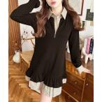 【10%OFFクーポン!1/16(金)1:59まで】ワンピース ハーフジップ レディース 長袖 韓国風 ショート丈 フロントジップ ハイウエスト 薄手 タイトワンピース フェミニン オルチャン おしゃれ 秋
