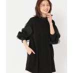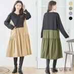 ワンピース 長袖 レディース チュニック 大人可愛い 異素材切替 フレアー 膝丈 婦人服 夏 秋 M L 黒 カーキ グレー 30代 40代 50代 ワンピース337 TRUBE N82-422