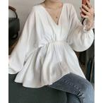 ブラウス シャツ バルーンロングスリーブペプラムブラウス(チュニック・ミニワンピース) レディース