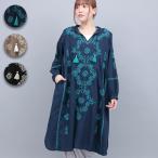 カリガリ ワンピース ナザーカト レディース ロングワンピース ロングチュニック インド コットン 刺繍 花 フラワー ボヘミアン アジアン エスニック