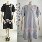 ベルパーチ Belpaci お花コットン刺繍チュニックワンピ 日本製 洗える ワンピース 春 夏 秋 きれいめ ワンピース レディース カジュアル ひざ丈 グレー 黒