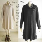 【日本製 洗える】柄 膝丈 ミディアムワンピース チュニック 長袖 レディース aラインワンピース ゆったり 秋冬 大きいサイズ 体型カバー ナチュラル 通勤 秋 冬 春 上品 着回し レース 30代 50代 40代 ポケット付き【ベルパーチ】お花バルフィーニット&フリルワンピ