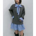 ワンピース ケーブルニットチュニック×シャツミニワンピースSET